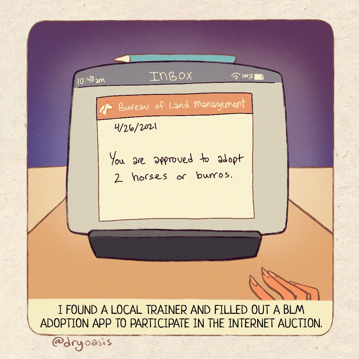 A comic documenting my personal experience of trying to adopt a mustang and everything to follow.